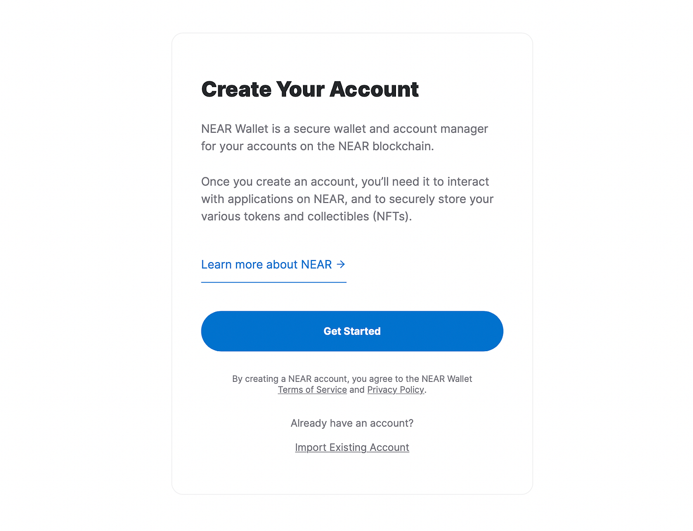 You can either import an existing NEAR Wallet or create a new one.